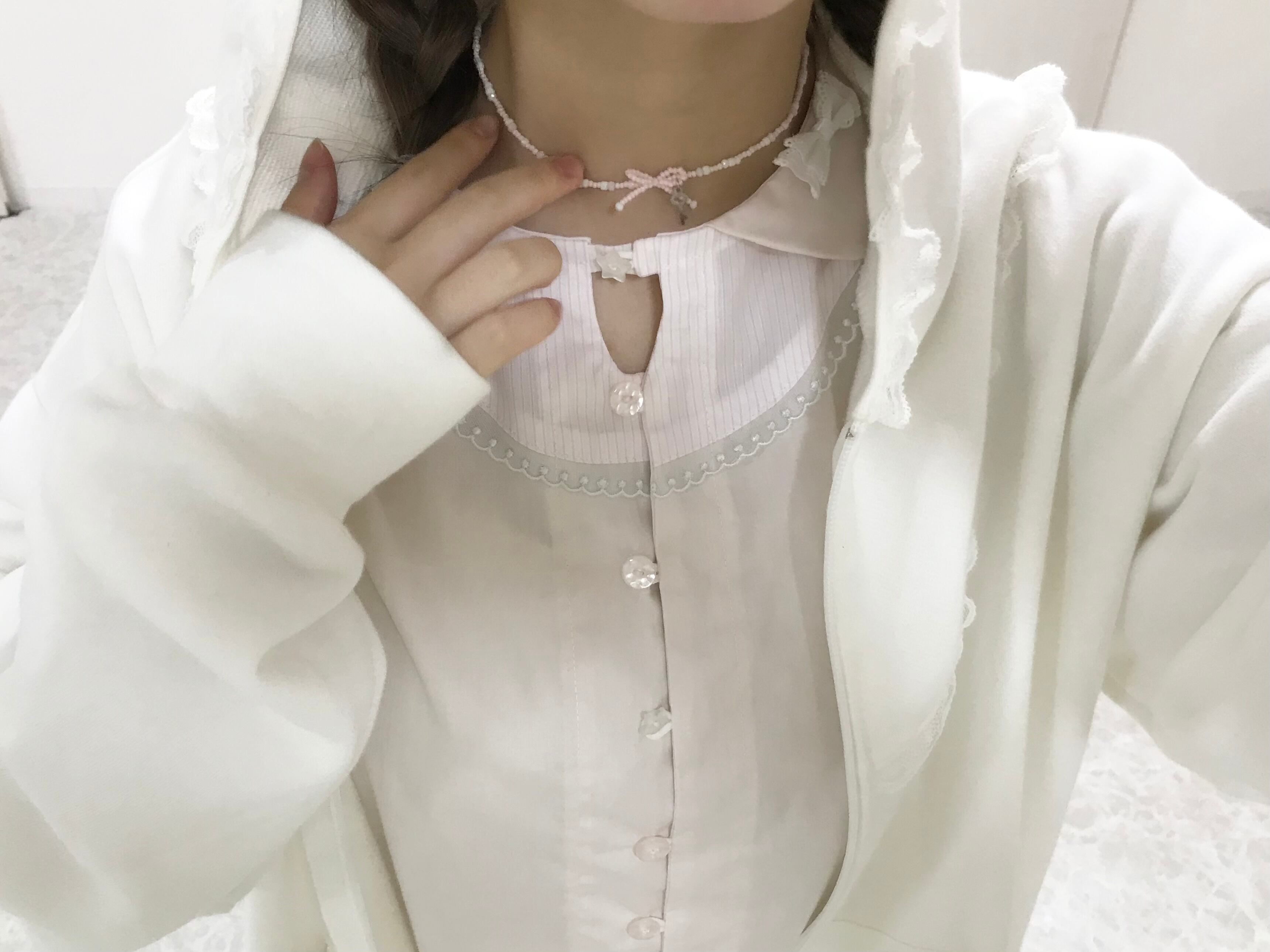 Tシャツやブラウスなど、首元が少し詰まっているお洋服にも♪♪