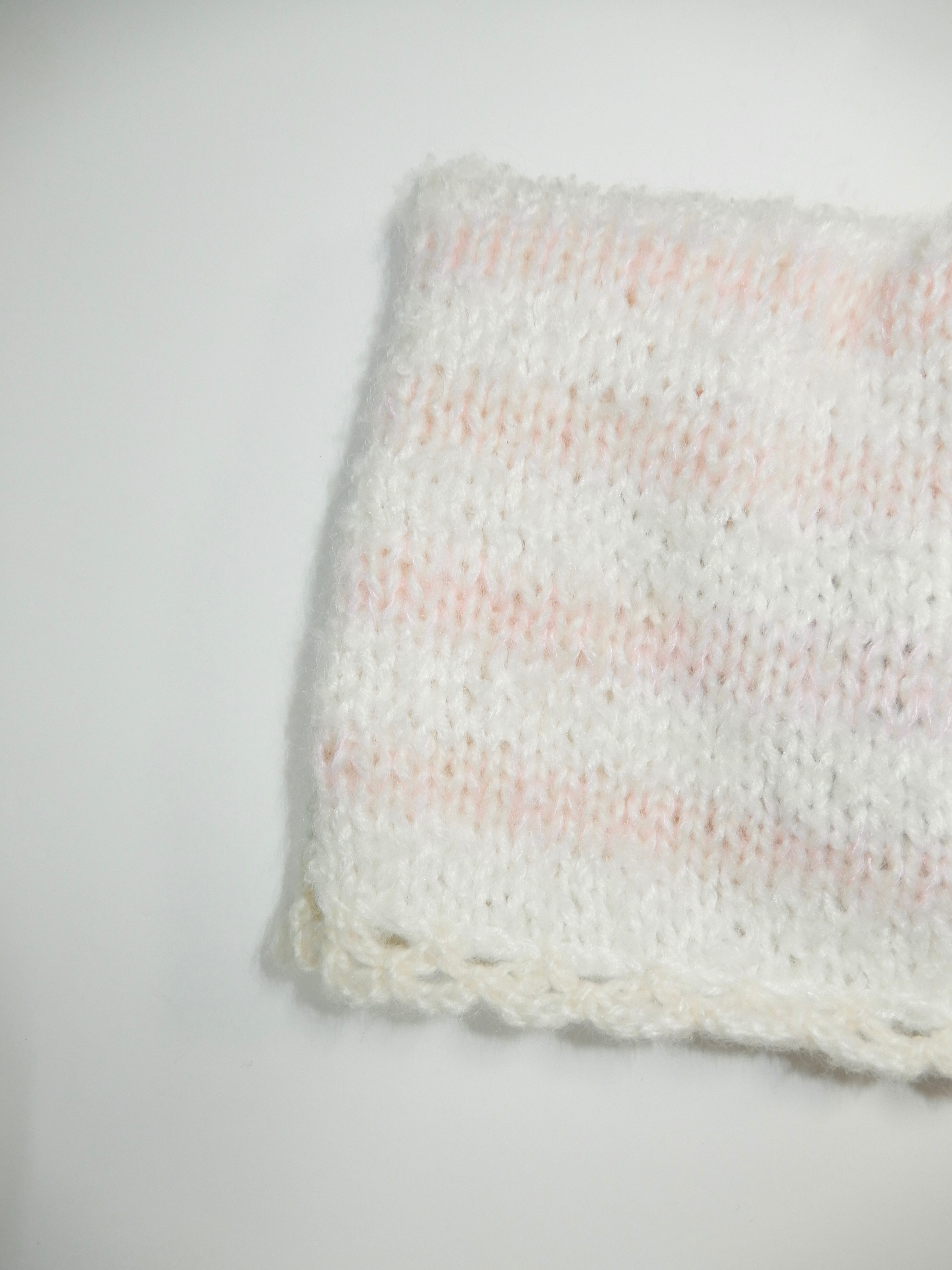 ② オフホワイトとホワイトピンクのモヘヤ糸とループヤーンでボーダー柄✩