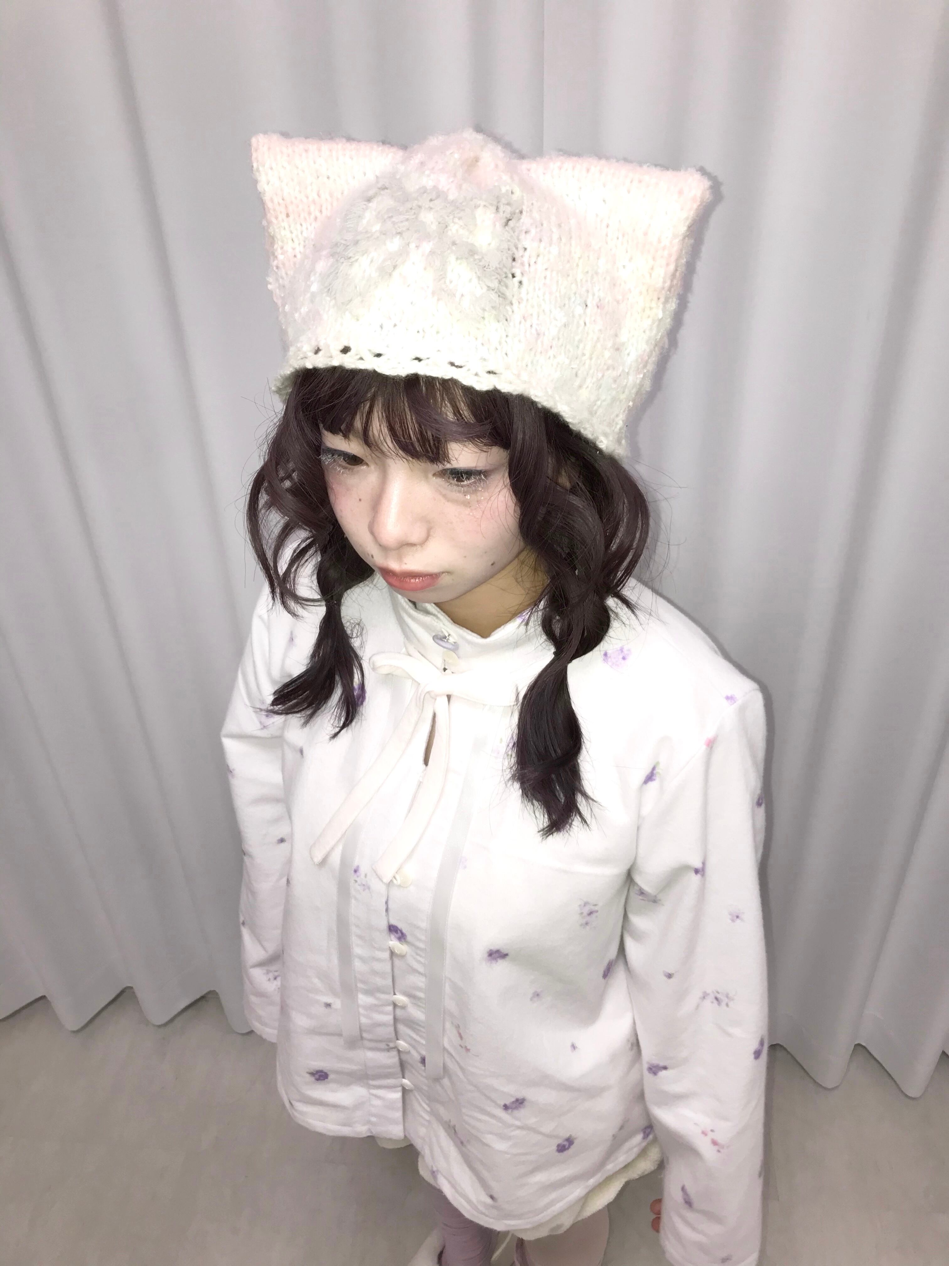 顔周りには、ふりふりとした縁どり編みをしているので、よりドーリーな印象を与えてくれます。♡