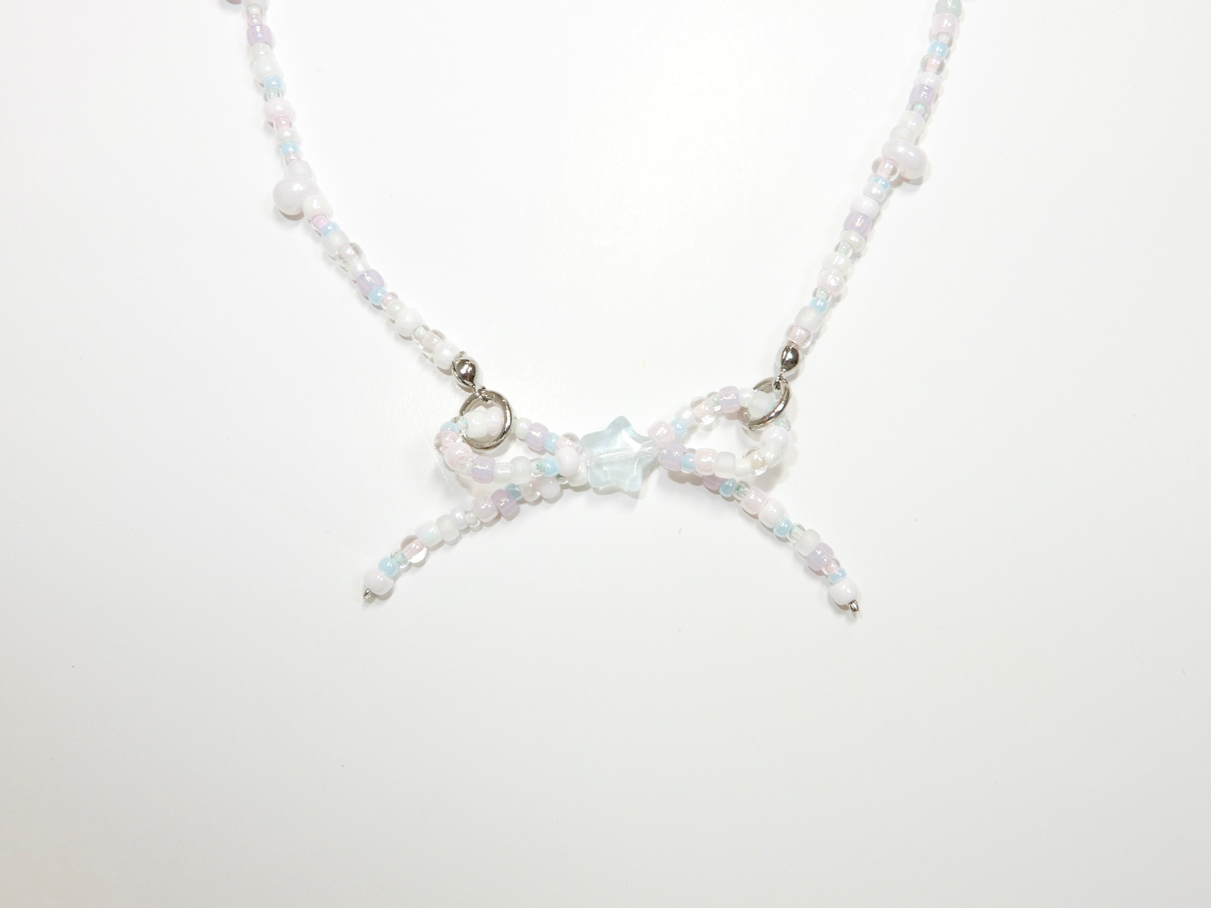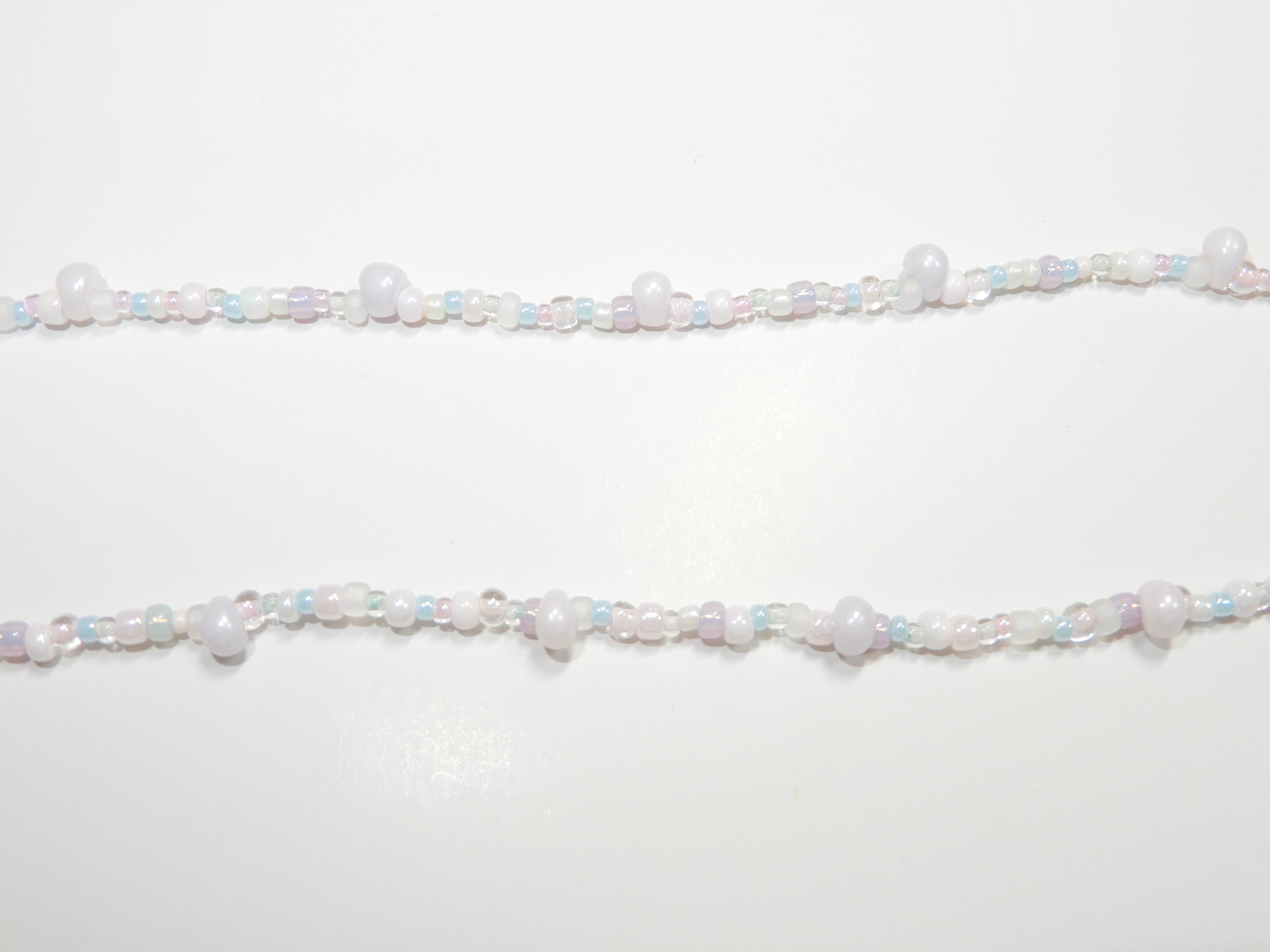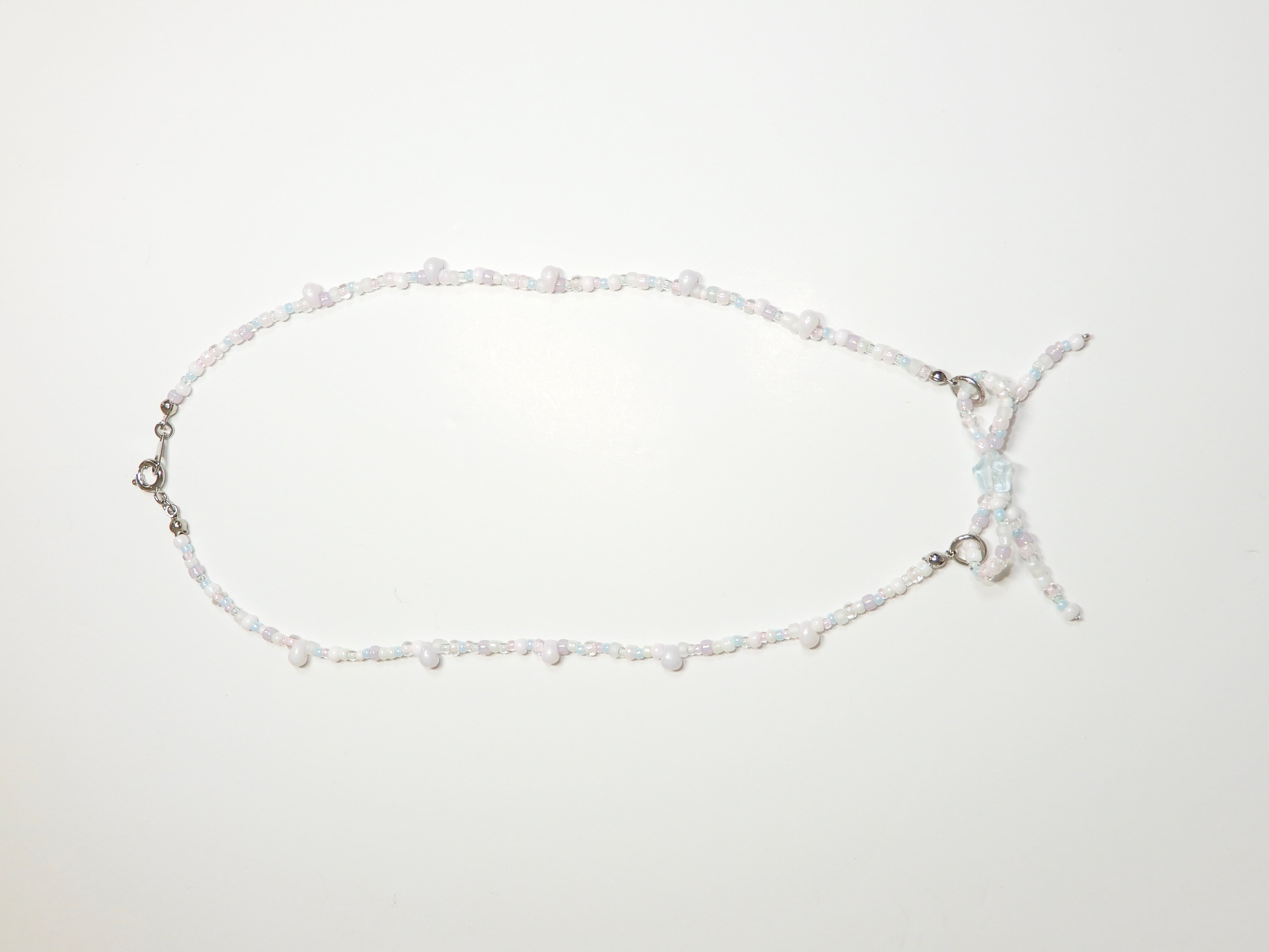 水色、パープル・ピンク・ホワイト・ミントグリーンなどのパステルカラーのビーズ、乳白色のビーズやしずく型のビーズでお作りしています꙳ ꙳